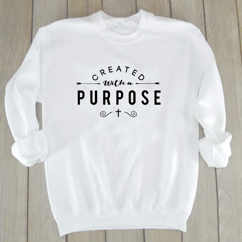 Buy Created with A Purpose Sweatshirt Christian Plus Size Hoodie Cross Graphic Women Causal Pullovers J