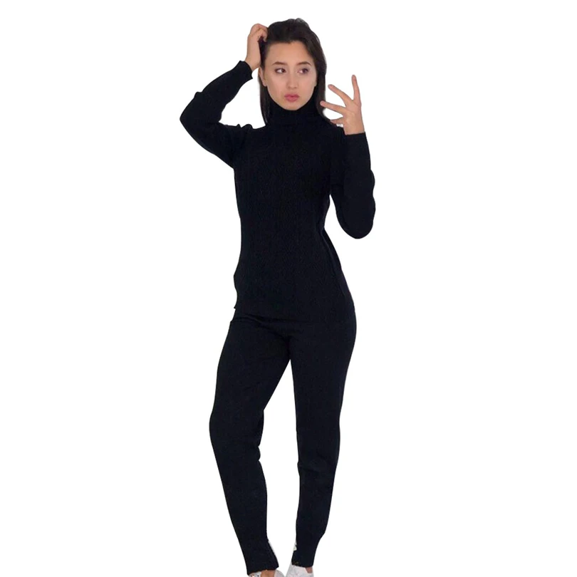 Buy MVGIRLRU woman sweater suits twisted knitted sets turtleneck pull femme and pant two piece outfits