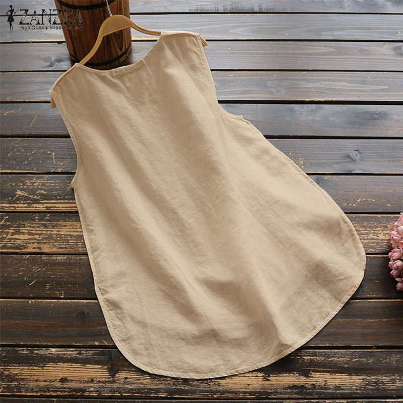 Promo 2019 Summer Tops Women Sleeveless Blouse Casual Solid Shirt ZANZEA Ladies Vintage Loose Blusas Cott