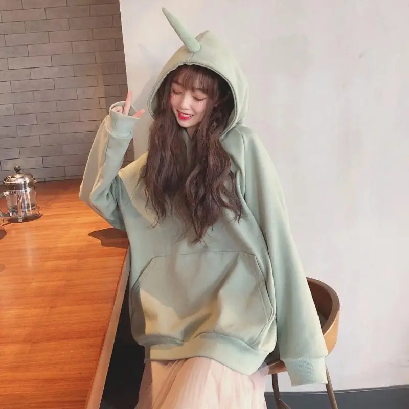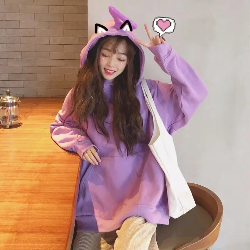 Promo MISSKY Autumn Winter Women Sweatshirt Solid Color Cute Teletubby Design Sweatshirt Hoodies Loose Pu
