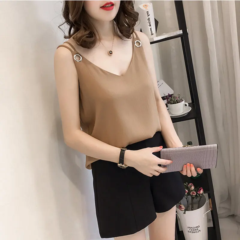 Promo Womens Tops and Blouses Chiffon Women Blouses Women Sleeveless Shirts Ladies Tops Plus Size XXXL/4X