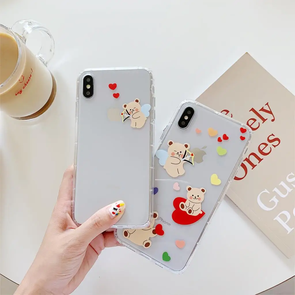 Best INS Korea cute cartoon love angel bear phone case for iphone Xs MAX XR 6X6 s 7 8 plus couple patter
