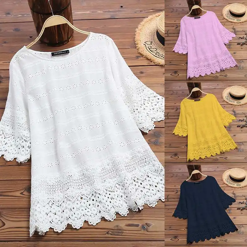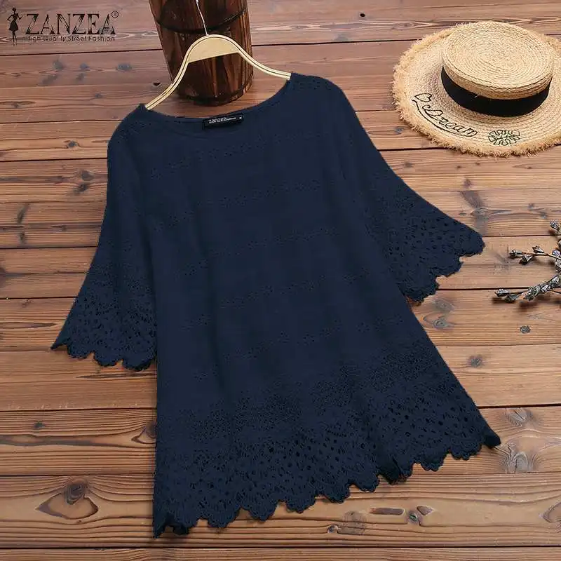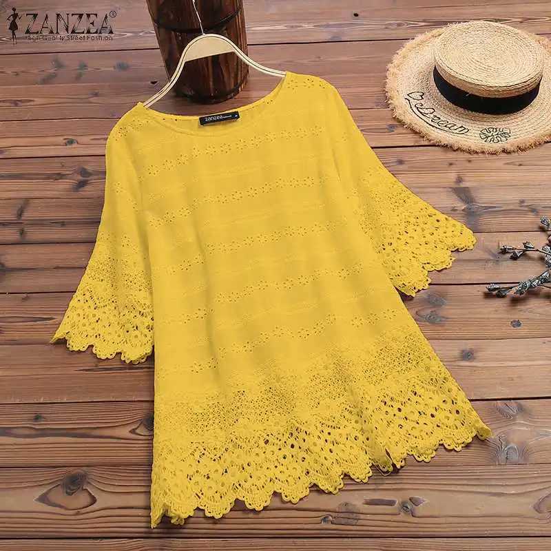 Best Women's Embroidery Blouse 2019 ZANZEA Vintage Hollow Out Shirt Ladies Casual Work Office Tunic Soli