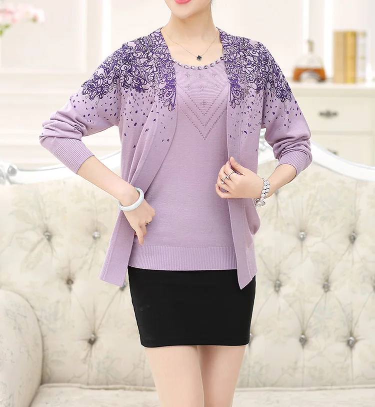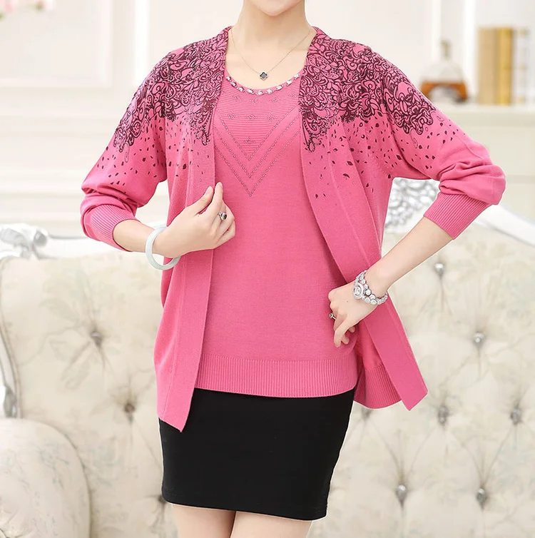 Best 2018 Autumn Set 2 Pieces Women Sweaters Tops Floral Tee Shirt + Blouse Suits Winter Pullovers Pull