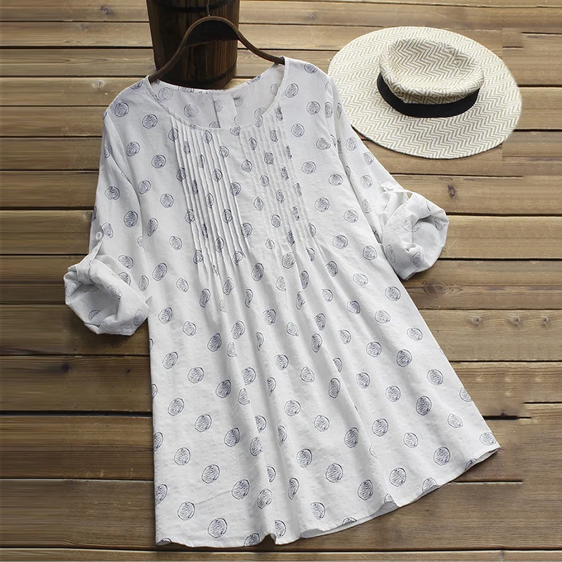 Buy Lady Cotton Linen Long-sleeved Blouse Femme Long Section Large Size Shirt Women Polka Dot Mini Bagg