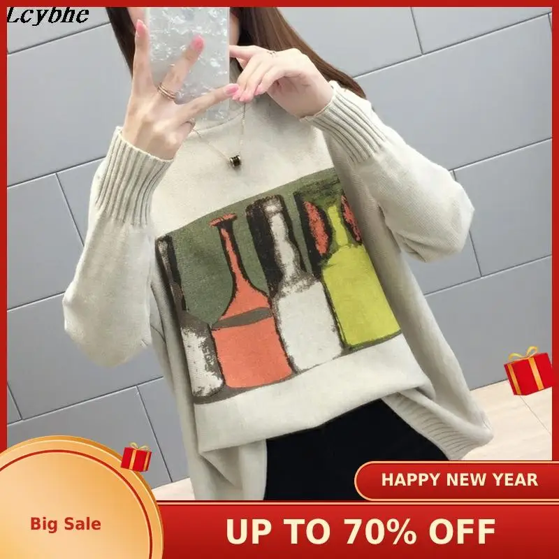 New 9959 (Room 2 Row 5 Row 1) Photo of the new high-collar Bottle PRINT Pullover Sweater 55-ag