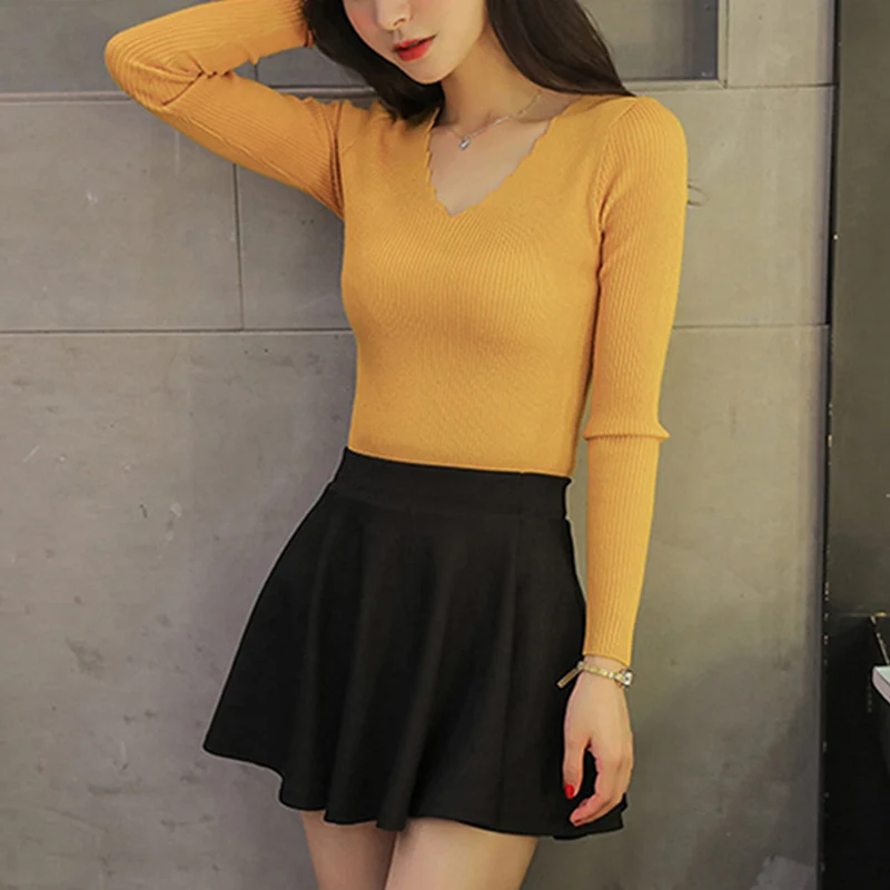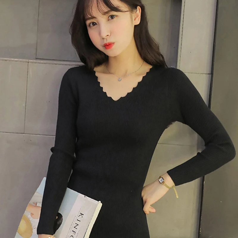 New Sueter mujer invierno Spring Autumn Winter Women Sweaters and Pullovers Sexy V Neck Long Sleeve Sol